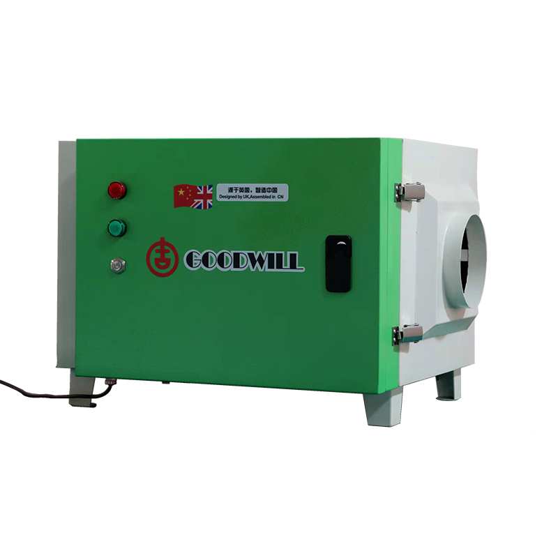 等离子体是一种聚集态物质,其所拥有的高能电子同油烟中的分子碰撞便会发生一系列基元物化反应,并在反应过程中产生多种活性自由基和生态氧,及臭氧分解而成产生的原子氧。活性自由基可以有效地破坏各种病毒,细菌中的核酸,蛋白质,使其不能进行正常的代谢和生物合成,从而至其死亡;而生态氧能迅速将油烟分子已为气体分解或还原为低分子无害物质。