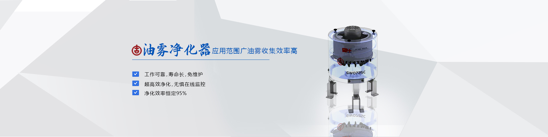 油雾收集回收的双重功能,本产品可以净化收集各种性质的烟雾,包括酸性气体,碱性气体,收集效率大于99%最小过滤精度达0.01UM,